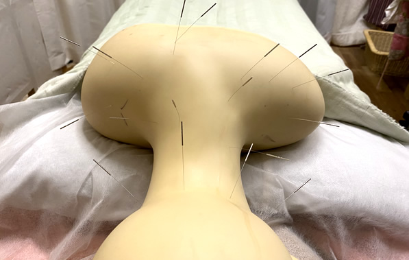 首肩へ鍼を痛くなく打つためのポジショニング訓練