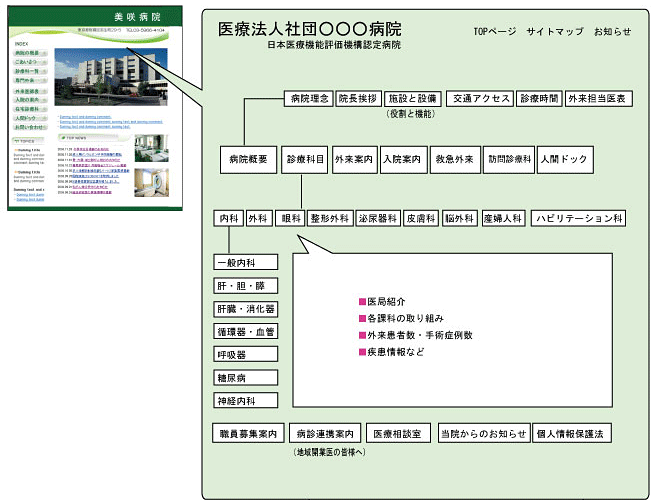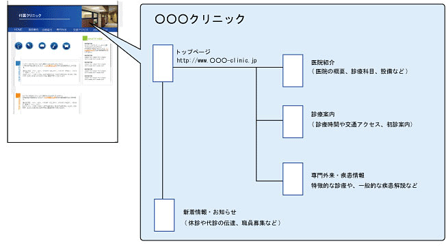 サイト設計とは 2020 4/18 デザイン編 サイト設計とは、いわば人体でいう骨格です。ホームページ開設・リニューアル案を考える最初の段階で、まず掲載する項目を選定し、それぞれに簡単なタイトルをつけ、図式化します。 これはサイトマップとも呼ばれます。 デザイン編 トップページのデザイン ホームページ開設と運用の流れ この記事を書いた人 vektor 関連記事 サイト開設のススメ ホームページ開設と運用の流れ トップページのデザイン サイト掲載文章の作成 ホームページ公開の準備 サイト開設後の更新管理 鍼灸院ロゴマークの作成